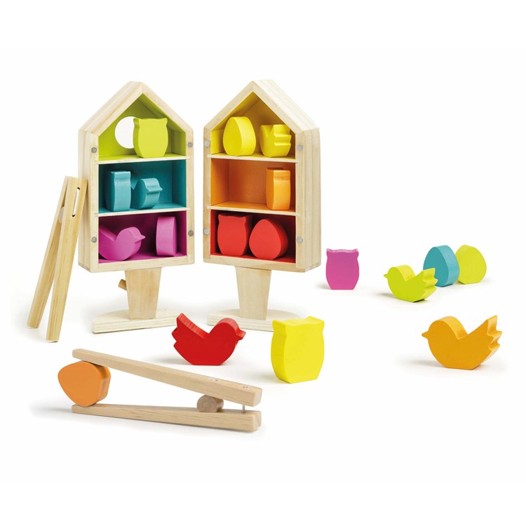 Ce matériel offre à l'enfant l'opportunité de trier et de transvaser des petits objets avec une pince.jeu